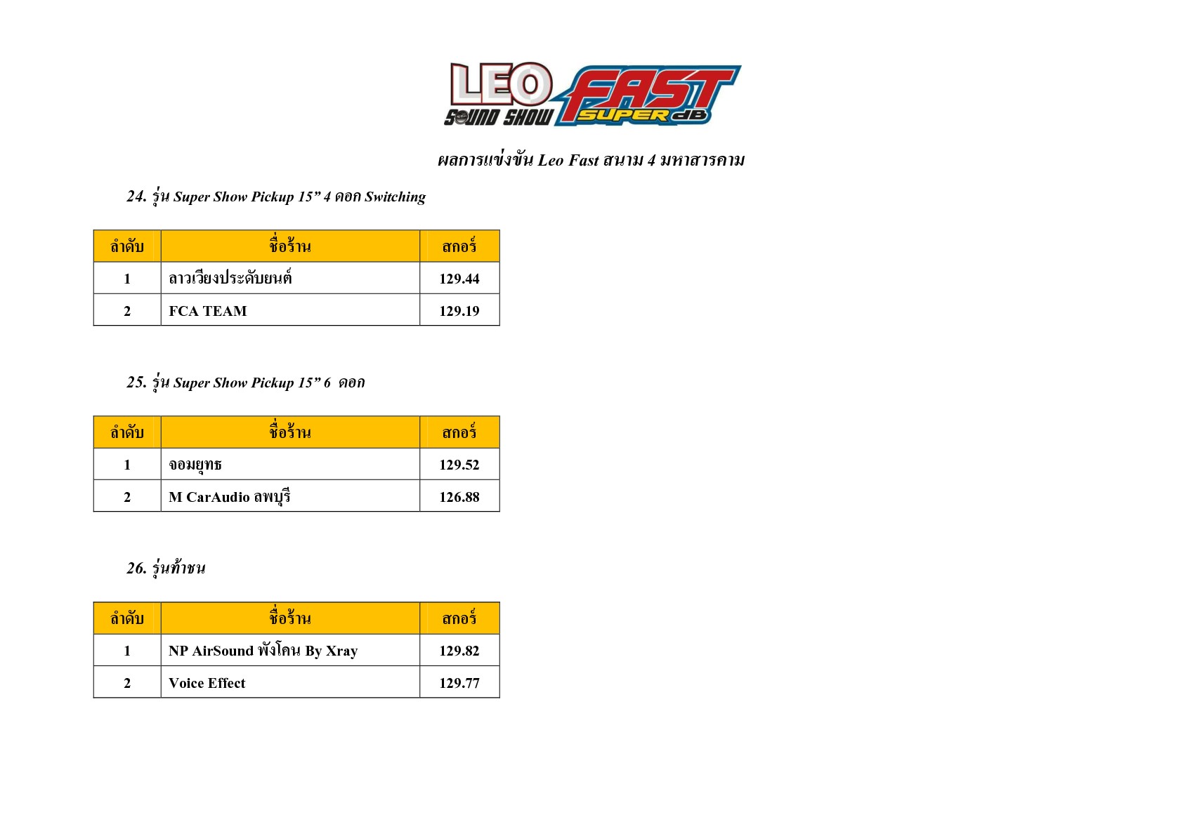 Posted in ผลการแข่งขัน SPL 2015 Leo Fast SuperdB สนาม 4 มาลินพลาซ่ามหาสารคาม admin เมษายน 3, 2016 Author: admin Related Articles Leo Fast SuperdB สนาม 3 หาดใหญ่ Leo Fast SuperdB สนาม 9 อุบลราชธานี ชิงแชมป์อีสานใต้ Leo Fast SuperdB สนาม 2 โรบินสันสกลนคร Leo Fast SuperdB สนาม 7 ตรัง ชิงแชมป์ภาคใต้