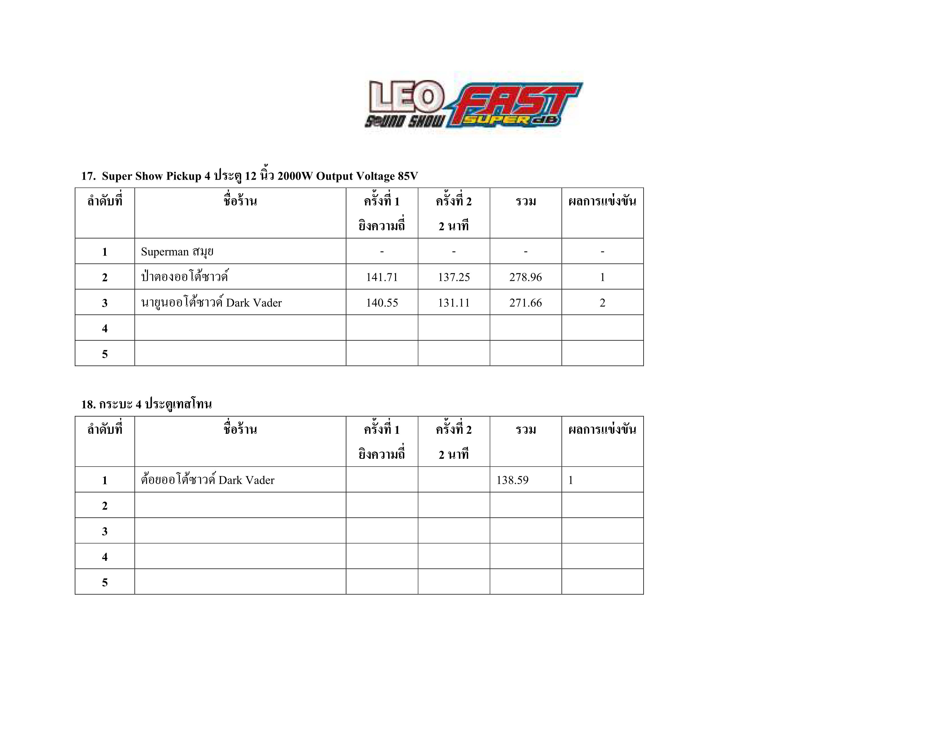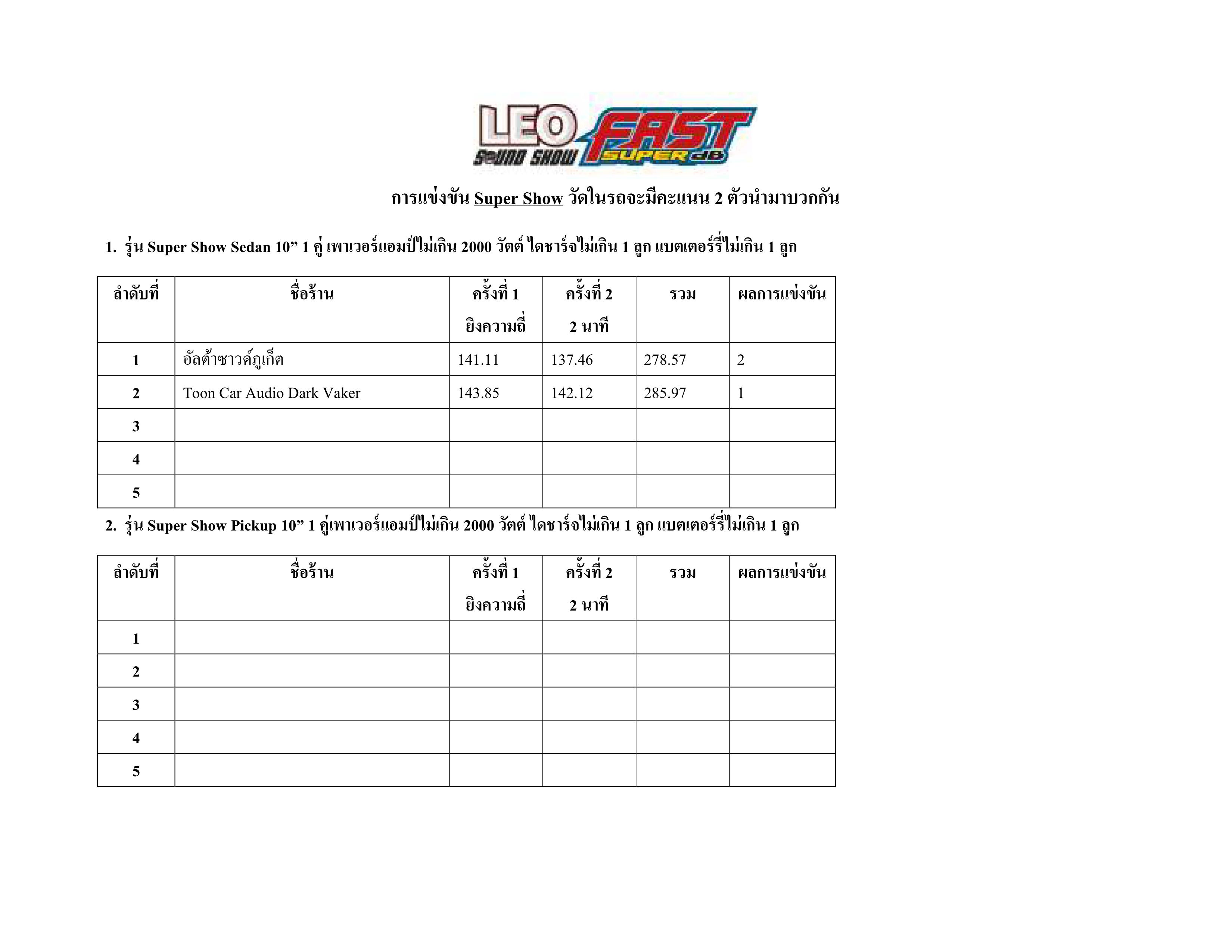 Posted in ผลการแข่งขัน SPL 2016 Leo Fast สนามที่ 10 จังหวัดสุราษฎร์ธานี admin ธันวาคม 12, 2016 Author: admin Related Articles LeoFast สนาม 6 ตราด LeoFast สนาม 7 เลย Leo Fast SuperdB สนาม 2 อุดรธานี Leo Fast SuperdB สนาม 3 YES บางพลี